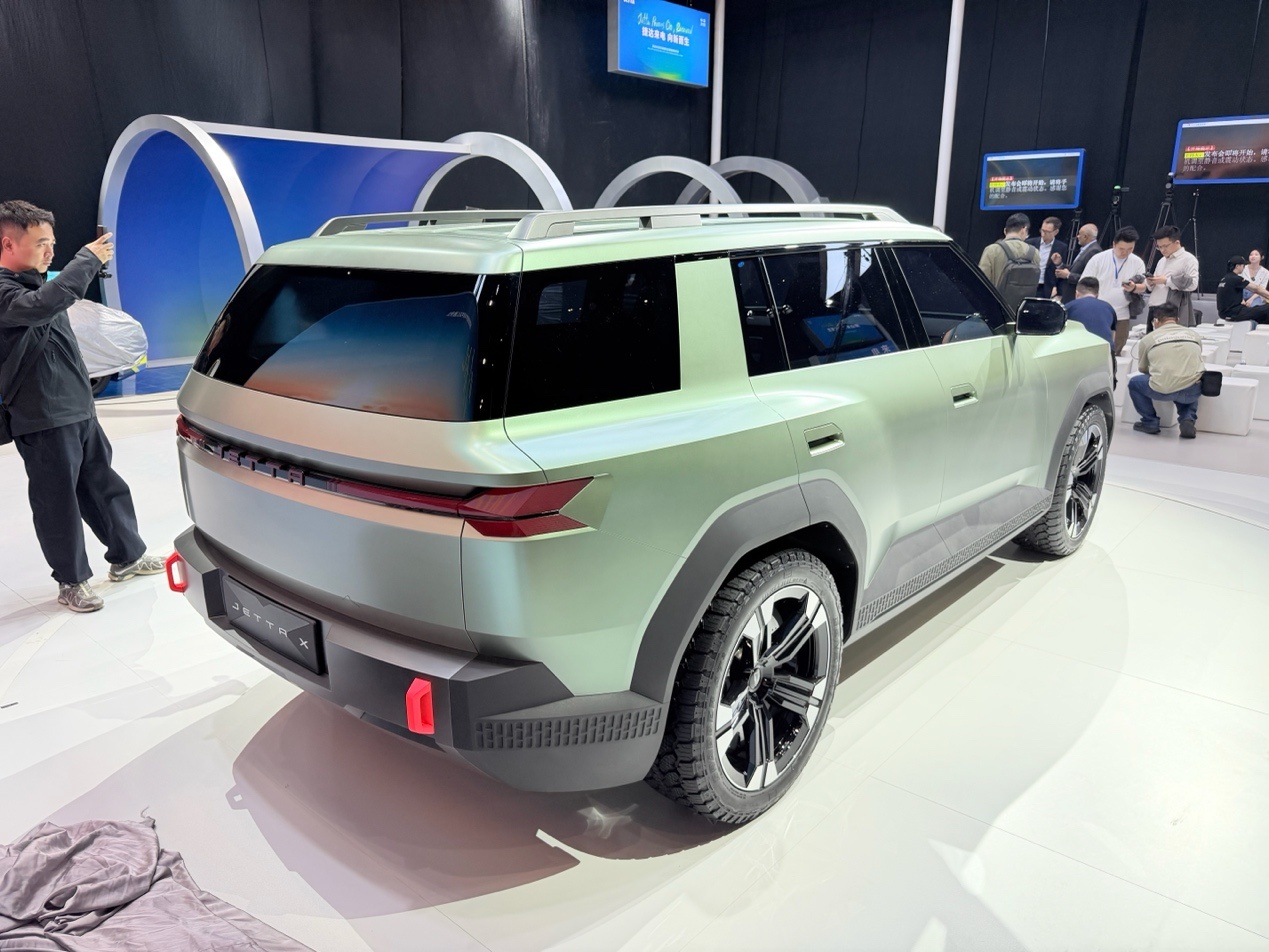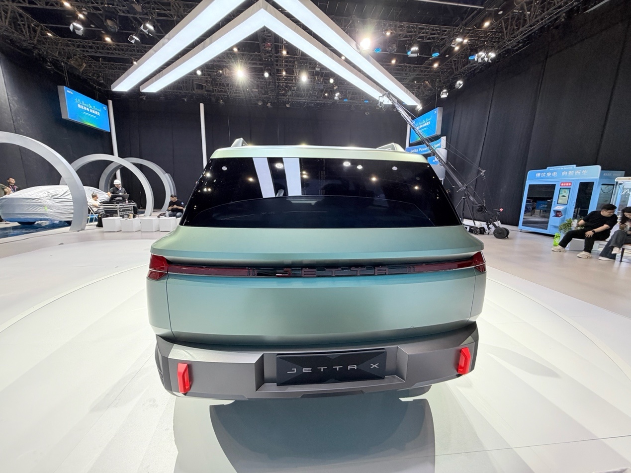 在尾部设计上,JETTA X同样采用了贯穿式的尾灯与前脸相呼应,并且中间的JETTA标识也可以点亮。后保险杠采用厚实的设计风格,进一步突出了硬朗的形象。这些设计不仅体现了概念车的特点,也为未来的量产车型设定了方向。