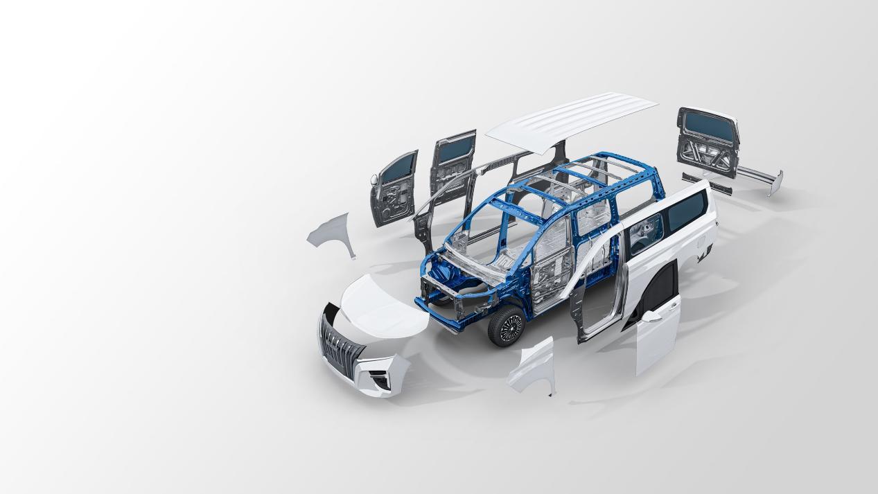 安全方面,两款车型均采用笼式车身结构,整车高强度钢占比75%,其中潜艇级高强度钢占比35%。自动挡车型配备六位一体主动安全辅助系统,包括ESC电子稳定性控制、HBA液压制动辅助、HHC坡路起步辅助、DOW开门预警、LDW车道偏离预警、RCW后碰撞预警功能,全方位守护行车安全。宿营车则标配主驾安全气囊、ABS防抱死制动系统+EBD电子制动力分配系统、倒车影像、直接式TPMS胎压监测系统、行车自动落锁等配置。