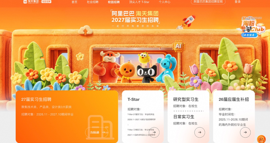 针对2027届实习生,淘天集团将提供更具竞争力的薪资待遇,其中算法、AI研发和AI产品岗位的实习生每天薪资为500元,T-star项目实习生每天可获得2000元的报酬,属于业界领先水平。