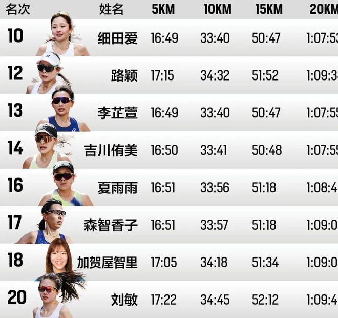 日本女子名将细田爱在本次比赛后正式退役。她在5公里时与李芷萱等人保持一致,半程用时为1小时11分36秒,在最后阶段以稳健的战术排在第10位完成比赛。她的表现堪称完美谢幕战。