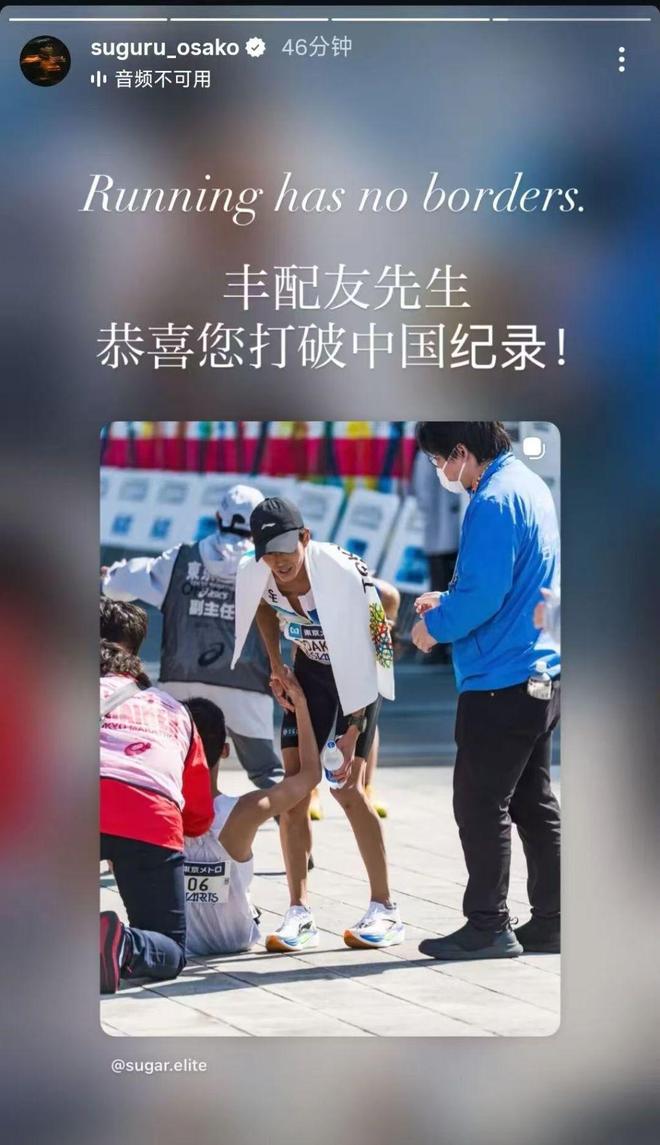 当他在赛道上独自奔跑时,国内跑圈已经开始庆祝他的成就。不少人表示:“中国马拉松的新纪录正在诞生”“丰配友的表现太出色了”“见证中国选手在日本赛道战胜日本最强者”……