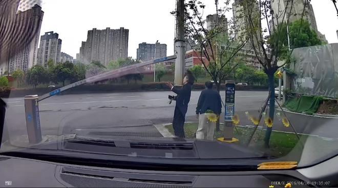当事人试图通过车辆出口处的道闸 图/网络
