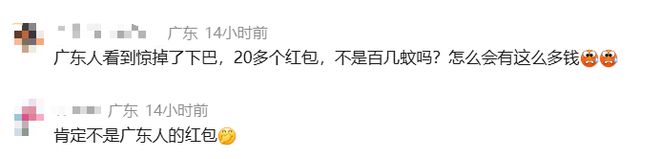 广东网友则表示:惊呆了!20多个红包怎么会有这么多钱。