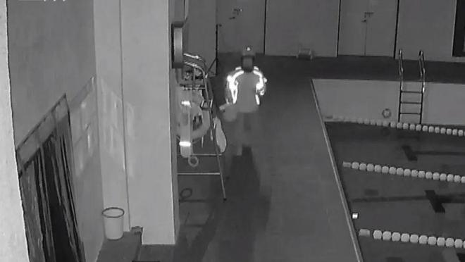 翁女士提供的监控视频显示,2月3日晚7时13分左右,一名外卖员从游泳池区域穿过,进入女更衣室并停留了数十秒,随后离开。当时,翁女士刚结束锻炼,正在准备淋浴。
