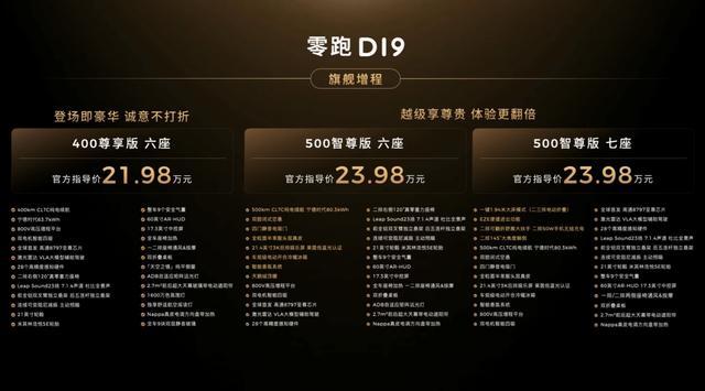 价格为23.98万元的智尊版则是六座与七座的区别,增加了500公里续航,并且加入了孔辉的空气悬挂、电动侧门以及后排冰箱彩电等高端配置。