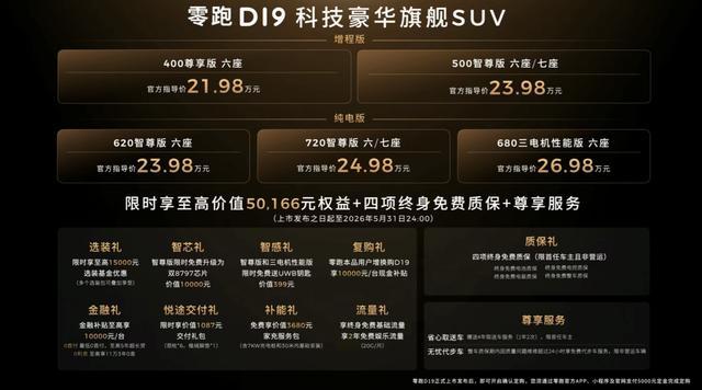 昨晚零跑正式发布了全新SUV D19(长宽高为5252×1995×1800mm,轴距3110mm),售价区间定在了21.98万至26.98万元之间,进一步丰富了市场上的高端选项。