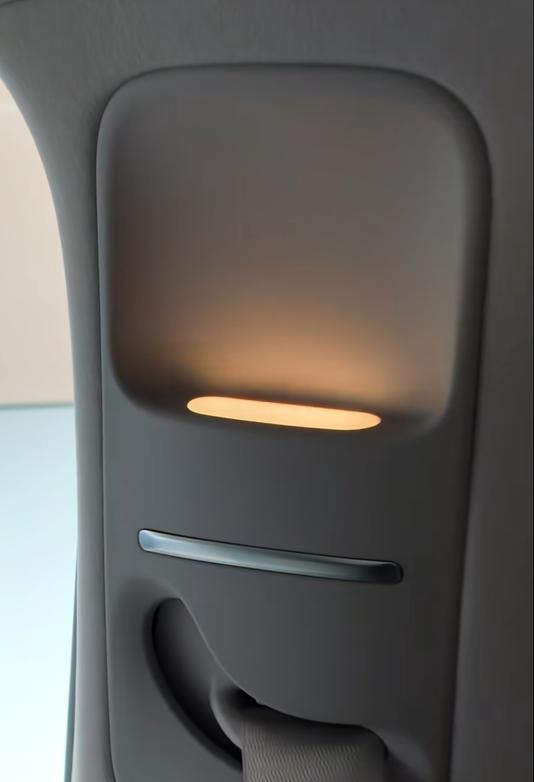 比如在安全带上方安装了一盏壁灯,这种设计可以模拟天窗氛围灯的效果而无需在车顶布设一圈灯光。