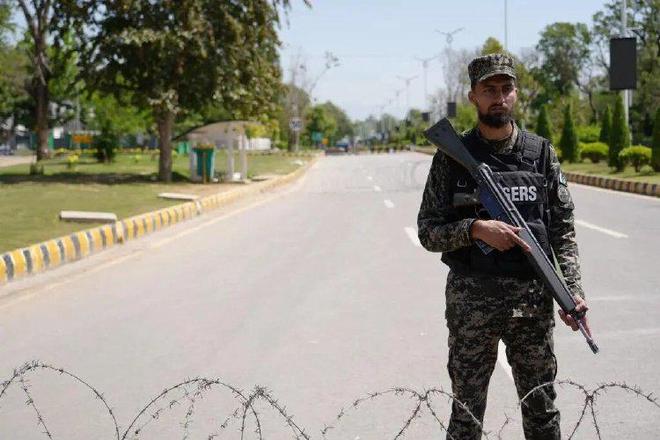 4月10日,军警在伊斯兰堡警戒。(新华社/徐汉摄)