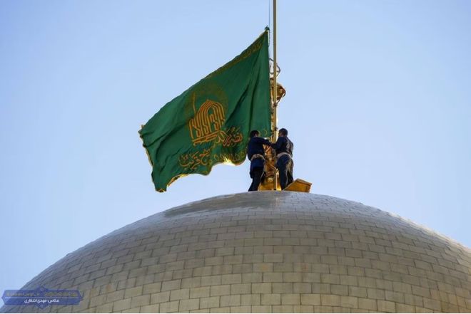 位于伊朗的拉扎维圣陵的圆顶上升起了象征胜利、和平与富饶的绿旗。(伊朗塔布纳克新闻网)