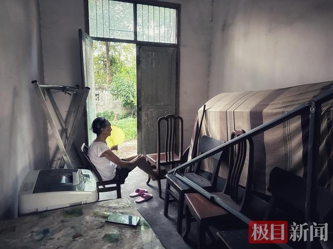 2025年7月30日那天,唐奶奶坐在客厅里乘凉,面前摆放着一口盖着布料的棺材。