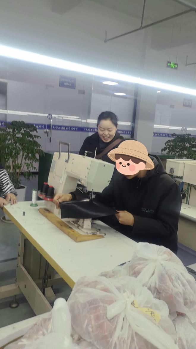 在制鞋厂里,杜衡正在练习针车操作 图/受访者供图