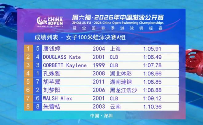 唐钱婷将会看齐罗雪娟,争取在50米蛙泳和100米蛙泳都统治比赛。2026年的唐钱婷迎来了开门红。她在蛙泳项目已经拥有强大的竞争力,尤其50米蛙泳。期待唐钱婷未来继续闪耀。