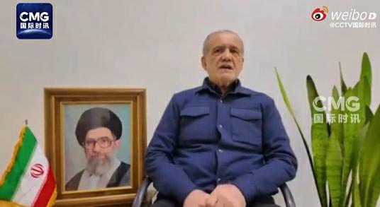 伊朗总统佩泽希齐扬发表了电视讲话(视频截图)