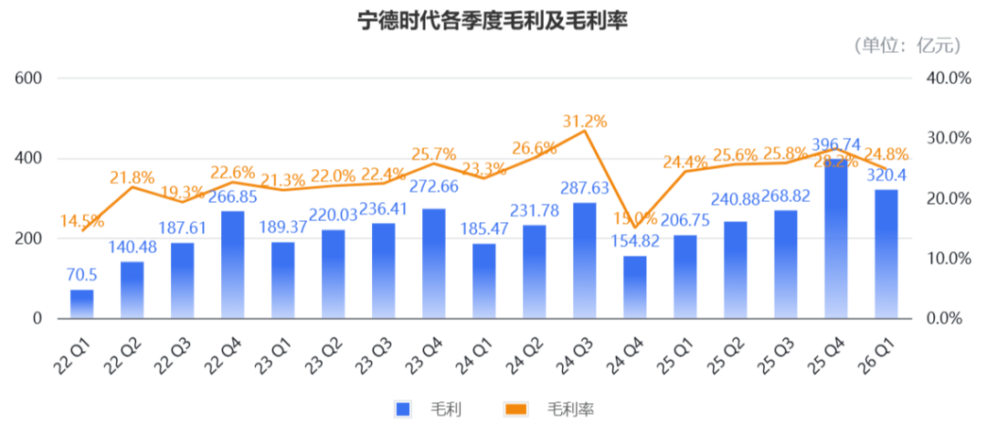尽管面临原材料价格上涨的压力,宁德时代依然保持了稳定的毛利率水平,一季度毛利为320.4亿元人民币,同比增长55%。
