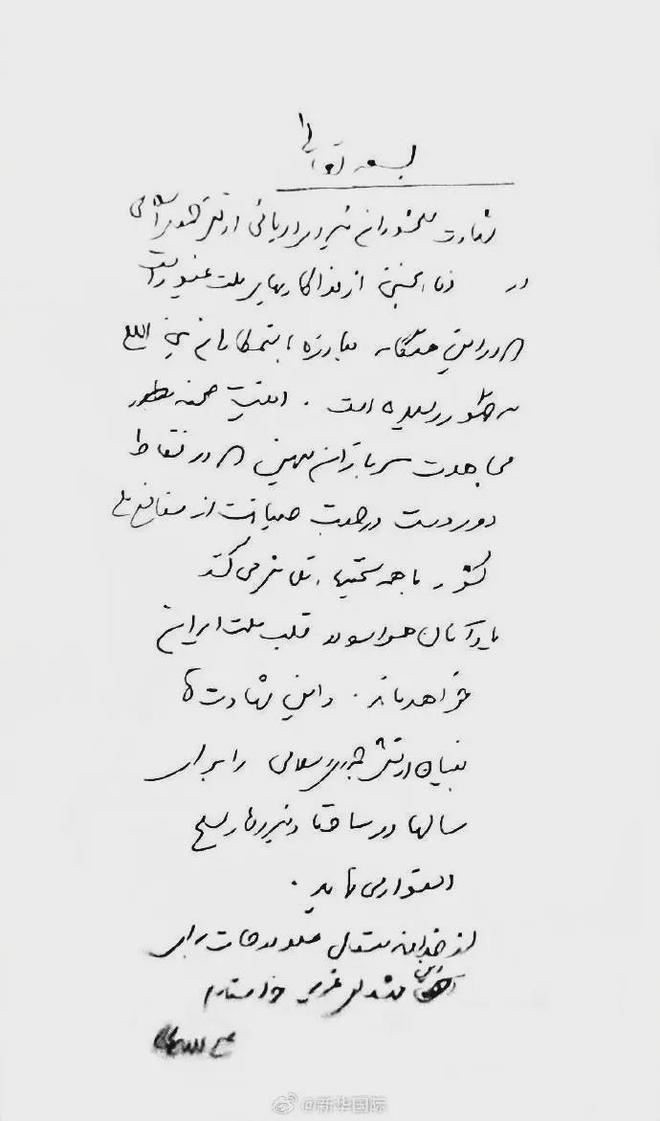 在以色列宣称“杀死”拉里贾尼后,塔斯尼姆通讯社等伊朗媒体称,拉里贾尼将“很快发布一份声明”。随后,拉里贾尼在社交平台X上发表了一篇悼念伊朗海军阵亡将士的手写信,表示阵亡将士的英勇事迹将永远铭记在伊朗人民心中。