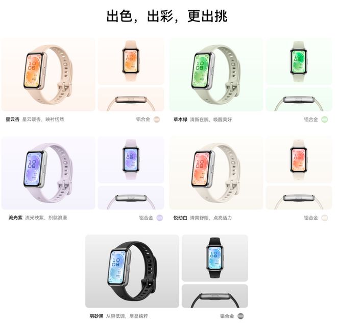 在个性化定制方面,两款手环各有侧重。华为手环11聚焦于春日时尚,提供了包括星云杏、羽砂黑、草木绿在内的多种配色,符合日常精致穿搭的需求。