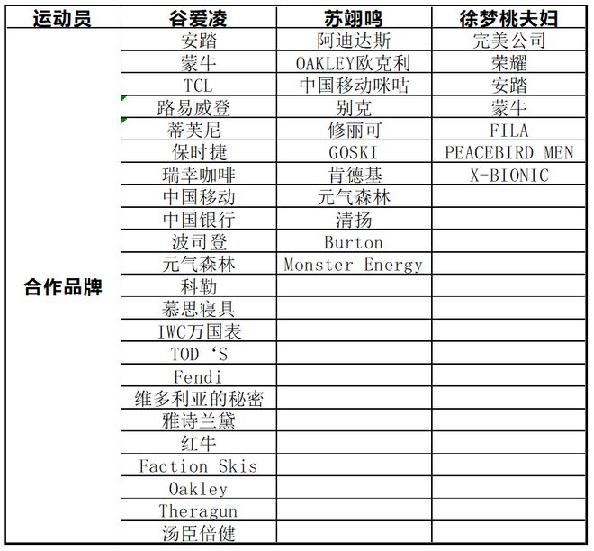 另一位值得关注的是苏翊鸣,在北京冬奥会后继续获得多项赞助合同,进入米兰周期后更是新增了多个高级别合作伙伴,其商业收入有望大幅增长至亿元级别。