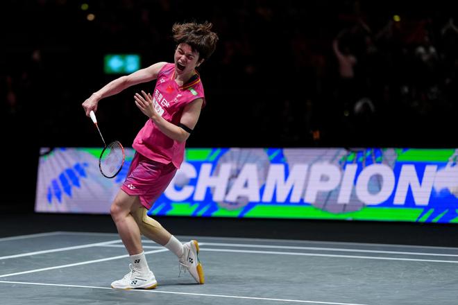 在全英公开赛上,王祉怡成功打破了对安洗莹长达十场的失利记录,终结了对手连续36场比赛不败的历史,并首次赢得女子单打冠军头衔。这位25岁的选手在捧起奖杯时激动地抛开了手中的球拍庆祝自己的胜利。去年在同一赛事中,尽管她在首局以21比13领先,但最终被安洗莹逆转。