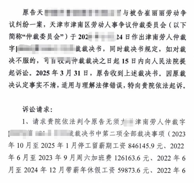 9月10日,崔丽丽告知潇湘晨报记者,其与企业之间的劳动争议纠纷将在9月23日开庭审理。这起案件源于该公司对津南区劳动人事争议仲裁委员会在2025年3月作出的裁决书不满而提起的诉讼。
