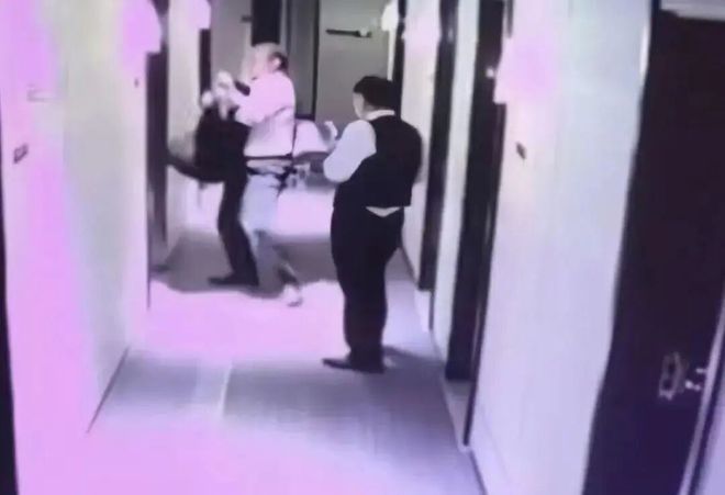 当晚酒店监控视频记录下了崔丽丽被带进房间的过程。