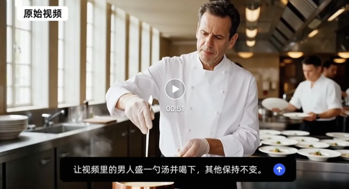 W2.7在视频编辑功能上表现出色,它允许用户通过简单的指令来局部调整画面内容,无需重新制作整个片段。具体来说,它可以实现元素的增加或删除(例如,“移除火车”)、物体替换(如“把胶片换成盘子”)以及修改物件属性(比如改变建筑物的颜色)。此外,这款工具还能依据提供的参考图像进行精确添加,并在不改变人物动作的情况下变换背景季节,从夏日到深秋。同时,它还支持将视频转换为羊毛毡等艺术风格、提升画质(例如黑白变彩色)、执行视觉理解任务(如主体分割)以及调整拍摄方式(比如更改对焦距离)。这些功能极大地简化了视频制作的复杂性。