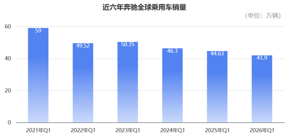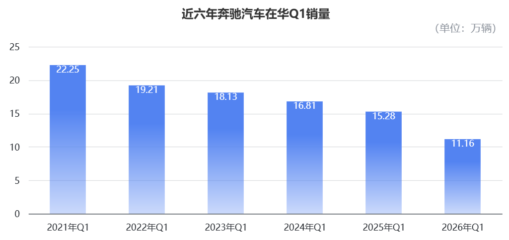 实际上,这已经是奔驰连续第五年Q1在华销量下降,较2021年Q1的销量腰斩。