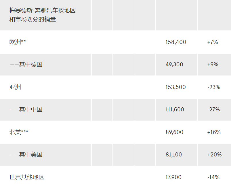 在全球市场中,欧洲和北美为奔驰带来了稳定的增长,但在亚洲尤其是中国市场则出现了显著的销量下降。