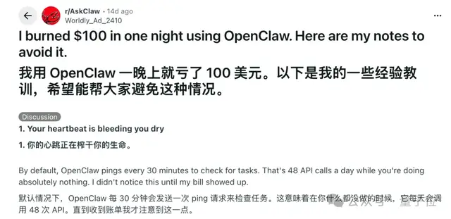 为了运行复杂的任务流程,OpenClaw需要大量的系统指令支持,这导致Token成本非常高昂。