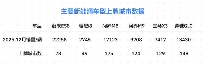 李想透露,理想汽车计划在2026年下半年发布全新纯电车型i9;蔚来也将在同一时期推出ES9,进一步竞争高端市场。此外,传统品牌如宝马的新世代iX3和奔驰的纯电GLC等新车型也将于同年上市。