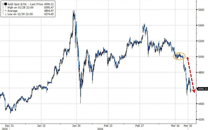 近期全球金融市场起伏不定,中东局势持续紧张,油价攀升至每桶约110美元,通胀压力加剧,令投资者感到忧虑。本应成为危机避风港的黄金,却在此时表现不佳。数据显示,黄金价格自年初的高点约5594美元/盎司一路下滑,某交易日单日跌幅超过12%,连续八个交易日下跌,累计跌幅接近20%,最新报价约为4200美元/盎司。这一跌幅不仅让长期看好黄金的投资者感到不安,也引发了市场的广泛质疑:黄金是否还能有效抵御危机?