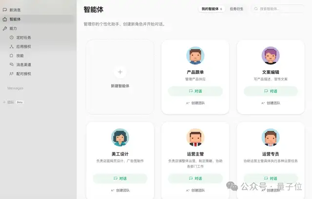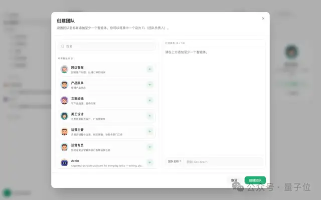 比如我们想要开一家网店,就需要事先构建好一整个Agent团队,有专门负责营销的、美工的、文案的……各司其职。