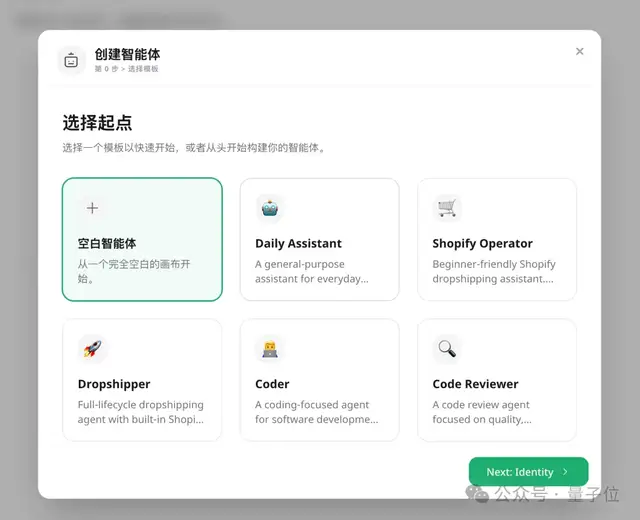 这里以新建一个网店客服Agent为例,可以从零开建,也可以选择官方设置好的Agent模板。