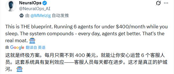 有网友算了笔账:每月不到400美元,换来六个24小时在线的员工,而且这六个人还一天比一天能干。在他看来,这才是真正的护城河。不是模型本身,而是这套能自我进化的系统。