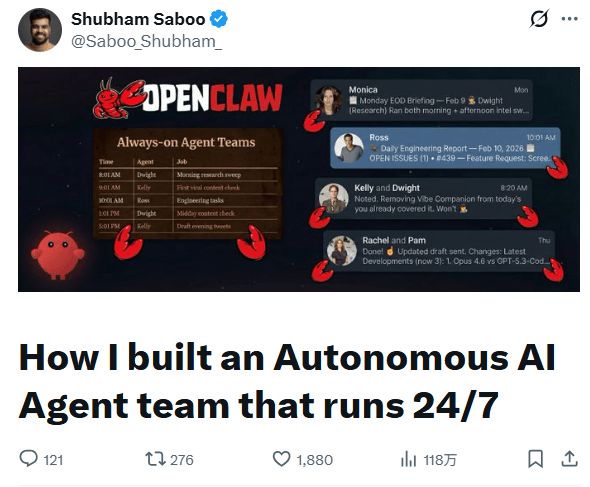 如果你也想在这场“养虾”狂欢中少走弯路,谷歌高级AI产品经理舒巴姆·萨布(Shubham Saboo)这份极具性价比的实操经验,绝对是不容错过的顶级“养殖手册”。