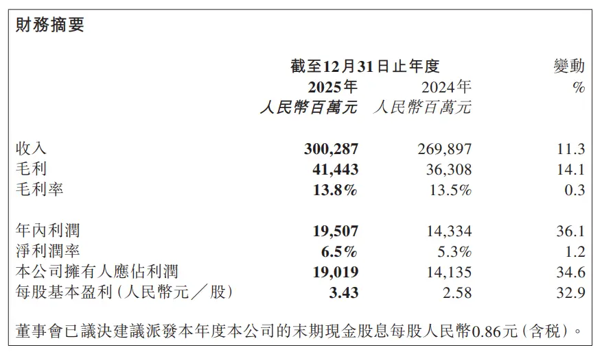 该年度的总收入达到了3002.87亿元,较前一年增长了11.3%。