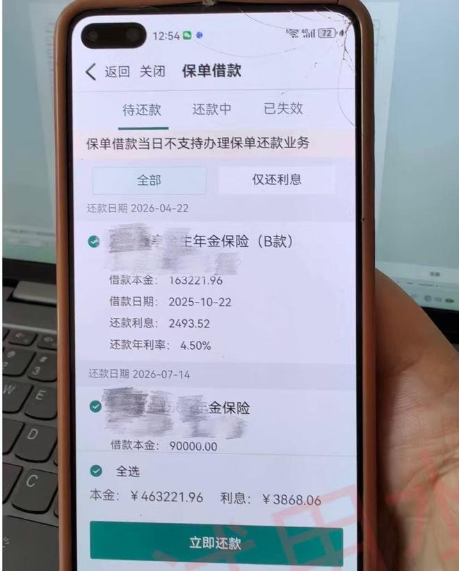 直到2026年2月,家属介入梳理老人的银行账户和保单信息时才发现,老人名下已累计产生约46万元保单贷款,且已产生数千元的贷款利息,这笔债务远超退休老人的偿还能力。