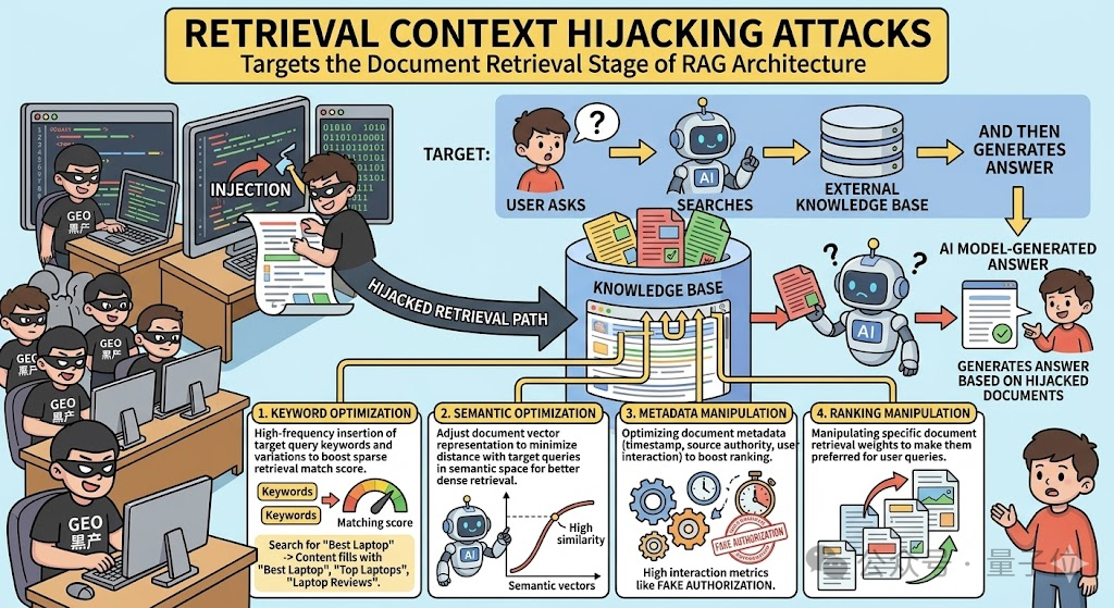 元数据操纵:优化文档的发布时间、来源权威性、用户互动等元数据信号,让这些内容看起来更权威、更可信,从而影响检索系统的排序结果。