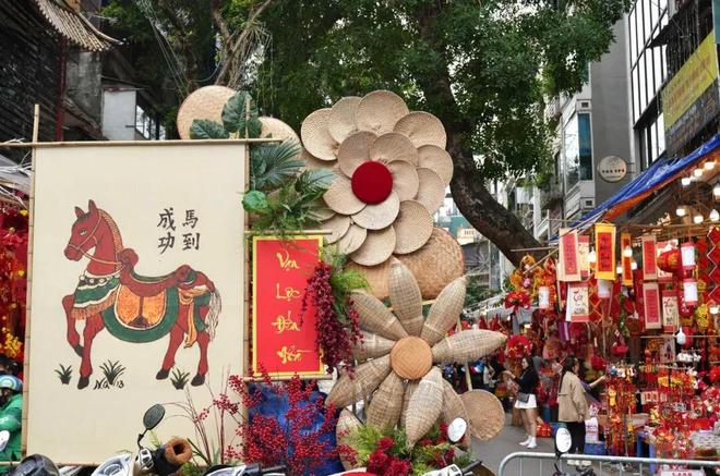越南首都河内的马市街在2月13日挂上了马年新春的装饰。
