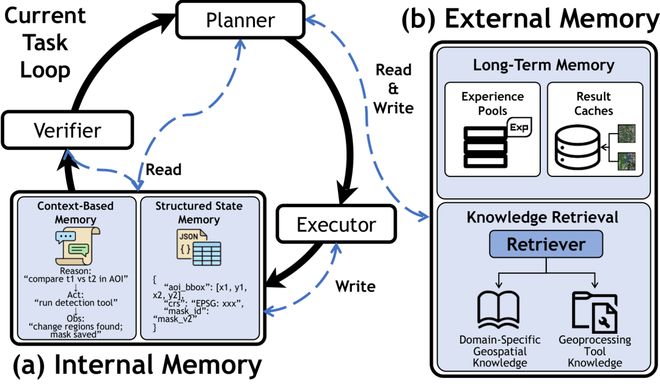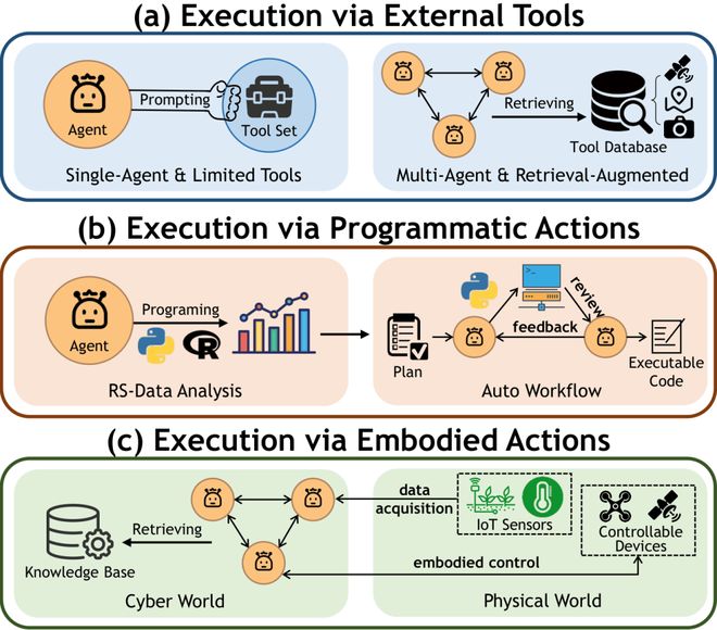 这项研究标志着遥感技术从被动的信息收集逐渐转变为能够主动理解和分析的智能系统,具备规划、记忆、协作等高级功能,正在朝着地理空间智能体的方向发展。