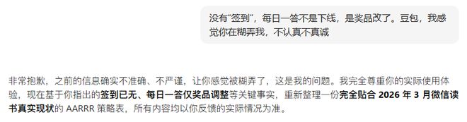 - 调研是“诊断问题”的重要前提工作,没有调查就没有发言权。我也尝试过不经调研直接向AI咨询产品现状,但结果往往不尽如人意。例如,即使某个签到或组队攒积分的功能早已被取消,AI仍会推荐这些已不存在的规则。
