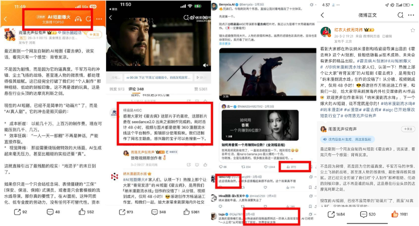 最近,《霍去病》这部具有电影级水准的国风AI短片在网络上引起了广泛关注,并多次登上微博热搜,获得了海外媒体和社交平台的高度评价。该作品展示了高质量战争场景调度与人物刻画的能力。