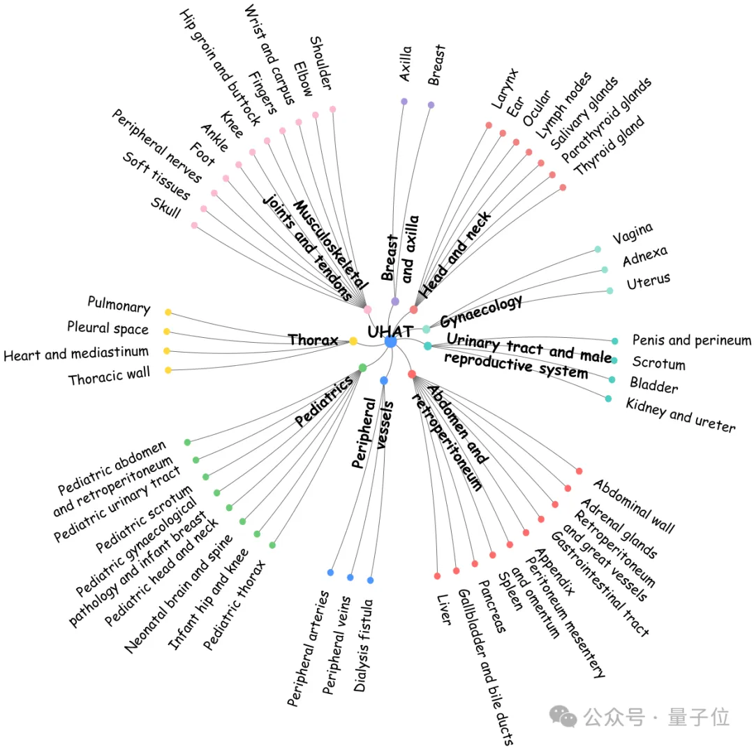 为了促进超声数据标准化和模型训练的一致性基础,团队建立了包含解剖层次结构(UHAT)和诊断属性定义的UDT体系。