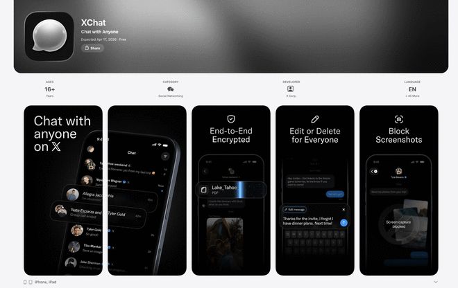 据官方消息透露,这款被外界誉为西方版微信的独立社交软件XChat,即将于4月17日在苹果应用商店上线。