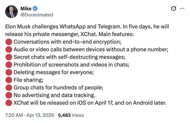 根据内测用户的反馈,XChat几乎集成了iMessage、WhatsApp和Telegram的所有优点,并贴上了鲜明的马斯克标签。