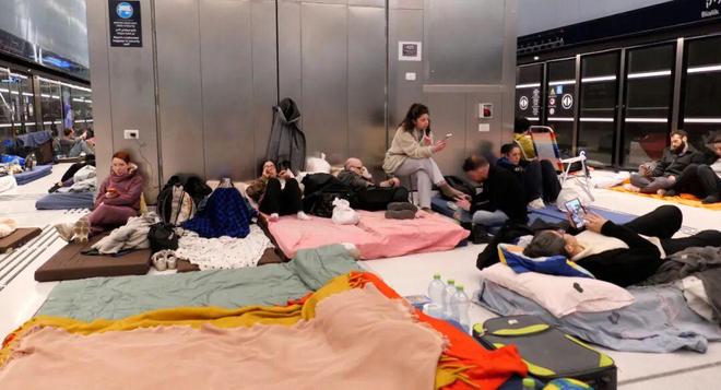 3月11日,民众在以色列中部城市拉马特甘一处地铁站过夜 /新华社发(吉尔·科恩·马根摄)