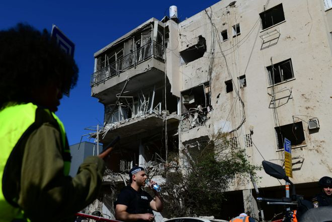 3月24日,在以色列特拉维夫,应急人员在导弹袭击现场工作 资料图/新华社