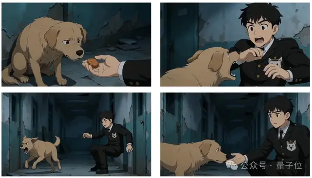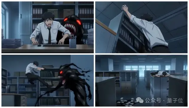 根据@图片-1中的动漫情节,按从上到下、从左到右的顺序自然过渡展开,生成一个动画短片。