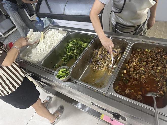 制衣厂包吃包住,工人们的晚餐是两荤一素。