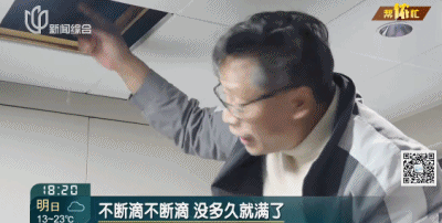 但先生从厨房天花板隔板中拿出一只盛满水的盒子