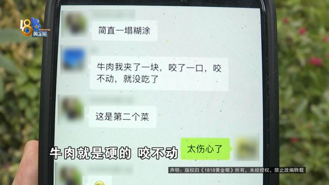 黄女士:牛肉就是硬的,咬不动。那第二就是这个菜品很多是凉的,比如说波士顿大龙虾,也反映龙虾特别小。像我那个表姐跟我反馈,这个菜她基本没怎么吃。